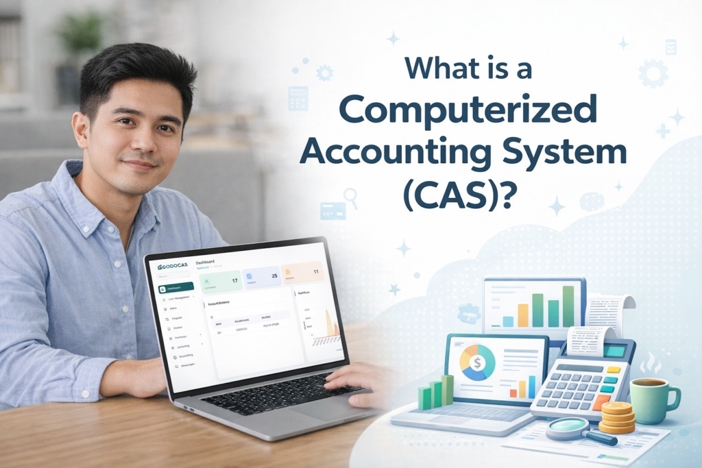 A Computerized Accounting System (CAS) is a system used by businesses to record financial transactions and generate structured accounting records such as Service Invoices, Books of Accounts, Financial Reports, and Audit Trail logs.